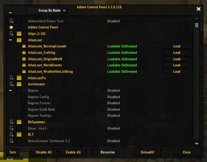 Addon Control Panel is an in-game addon manager that lets you enable and disable your addons without logging out to the character selection screen. It adds a separate “AddOns/Modifications” tab to the game menu where you can see the full list of installed addons, turn any of them on or off, group multi-module addons, and create preset profiles (for example: raid, PvP, alt characters, etc.).