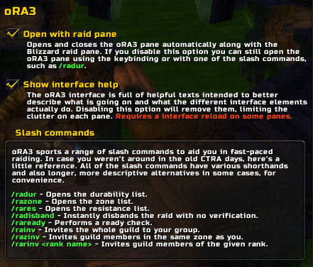 Type /ora3 to open the options and enable the modules you need (cooldowns, checks, panels). You can also access key features through the raid panel buttons depending on your version.